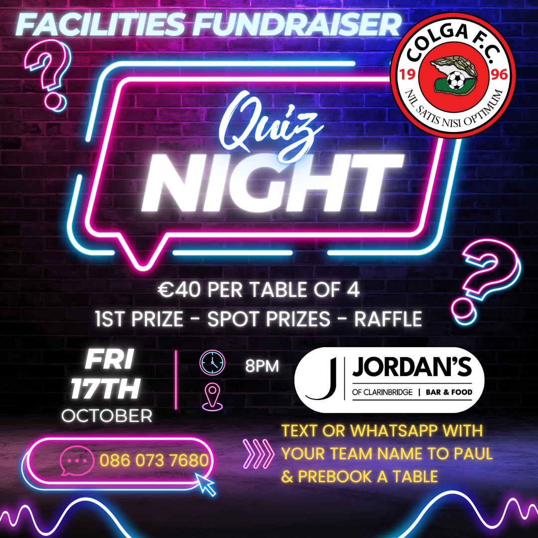 Quiz Night coming up on Friday the 17th of October - book your table now by texting the number on the flyer