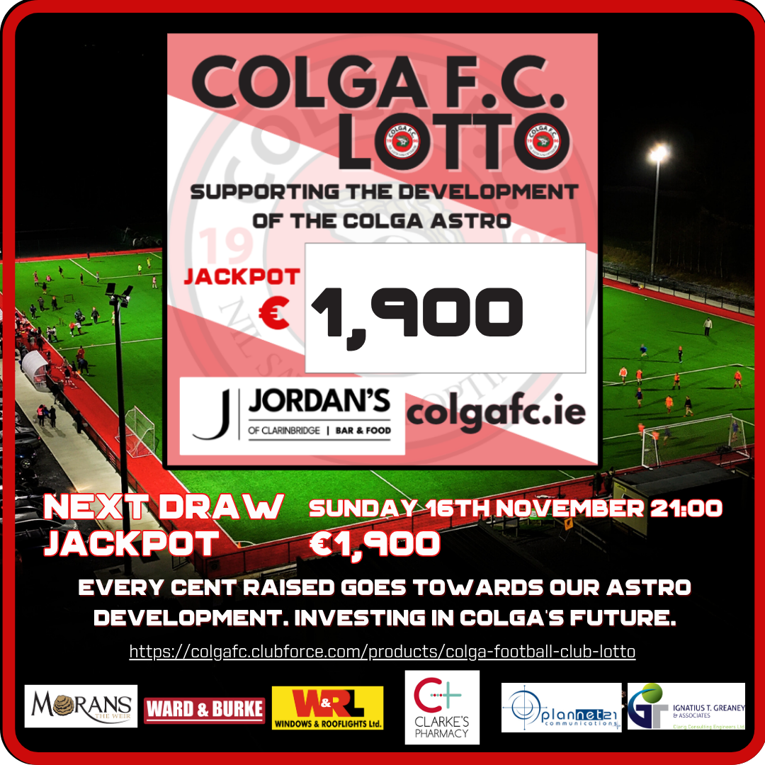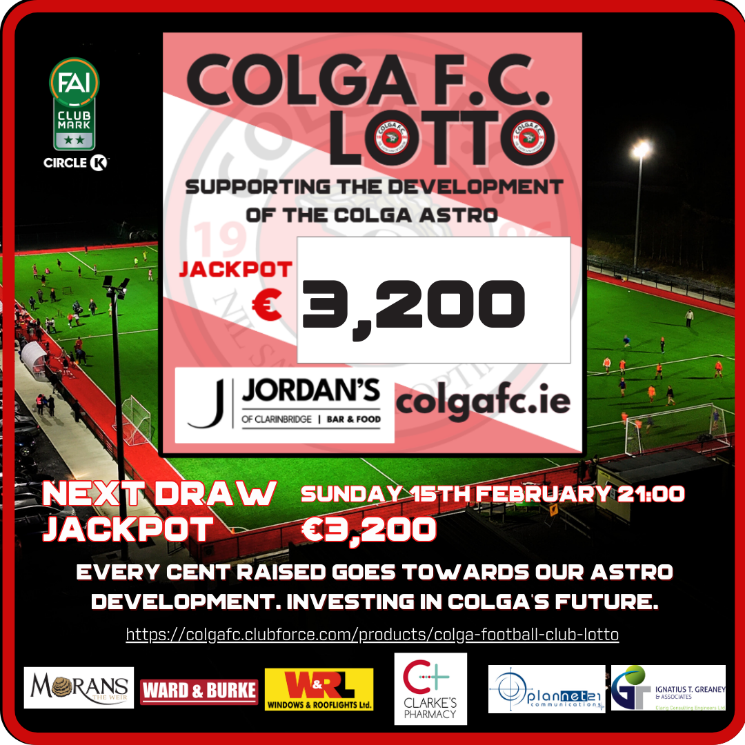 Big lotto winner on Sunday the 7th September. The jackpot of €6300 was won by Bernie Mulderrig. A huge congrats to her and we look forward to presenting her with her cheque in person very soon! Play the lotto now at https://colgafc.clubforce.com/products/lotto/colga-football-club-lotto